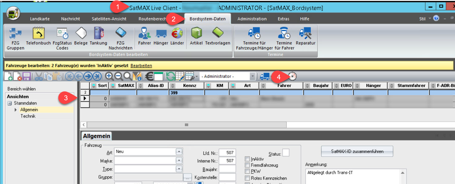 Starten Sie dazu den SatMAX-Client (1), dann der Reihe nach 2-4: